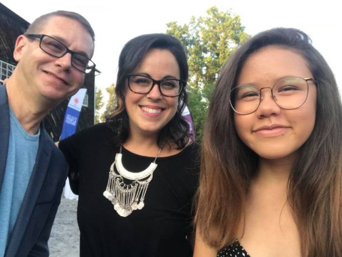 Roch et Catherine Archambault avec Marie-Lou St-Onge, de l’émission Sur le vif, à la rentrée de Ici Radio-Canada Ottawa-Gatineau la semaine dernière.