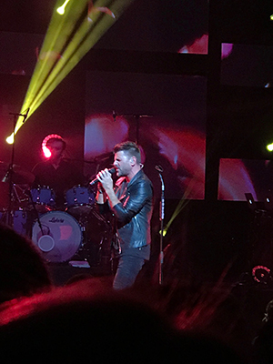 Marc Dupré a débuté son spectacle avec un jeu de lumière éblouissant, tellement que j’ai fermé les yeux à un moment donné car les carreaux d’éclairage de l’avant-scène étaient vraiment aveuglant. Après la première chanson, et ceci jusqu’à la fin du spectacle, qui faut le dire était sans entracte, les gens s’assoyaient et se relevaient sans cesse. L’intensité était tellement palpable qu’il était difficile de rester assis. L’artiste a même rejoint le public sur le balcon au grand bonheur des fans qui prenaient des photos avec lui.